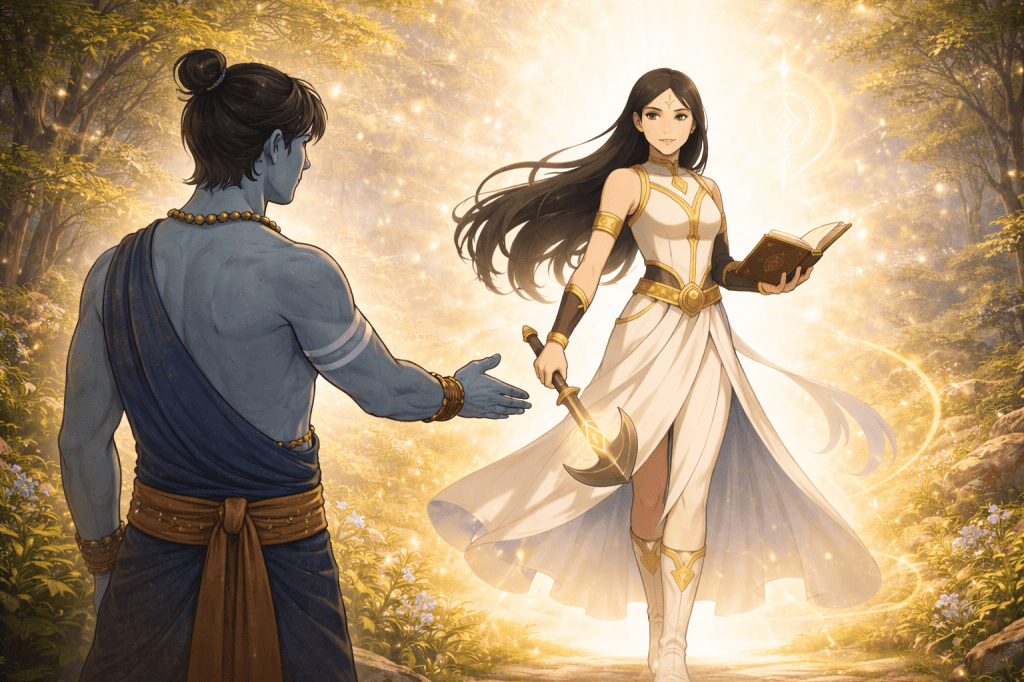 She arrived softly, like a gentle melody, her presence bringing stillness wherever it touched. She carried knowledge, clarity, and understanding, and her calm energy settled the restless thoughts of the beings of Parshivlok.