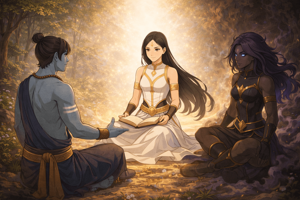 With Kaalin and Sarasmi, Parshivlok now held both fire and calm, fury and wisdom, shadow and light, woven together into its growing spirit.