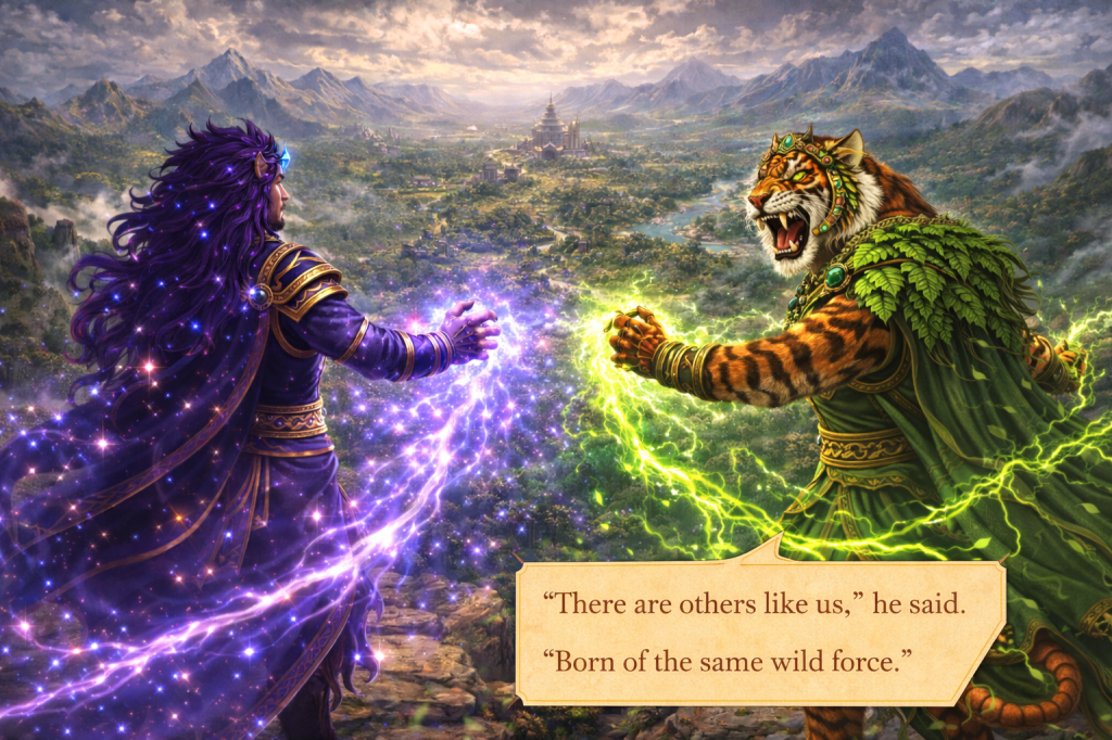 Without another word, Vyagresh and Narsant turned away, their presence sinking into forests and wild lands, becoming part of the planet’s deeper instincts.