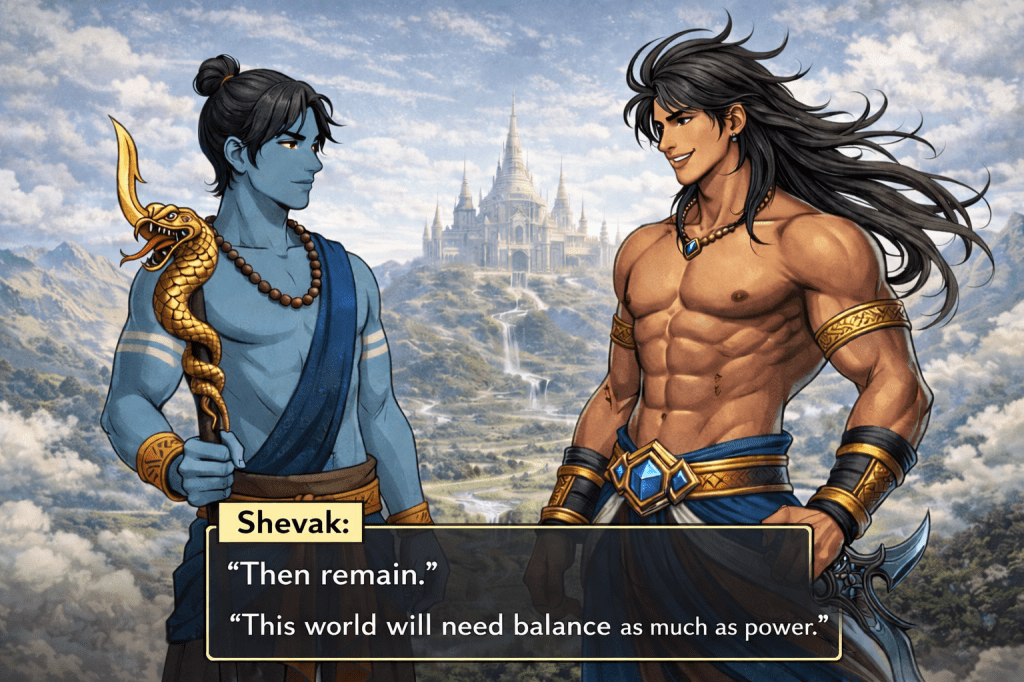 Shevak: “You heard Parshivlok before it called out.” Vayuputra smiled, warm and easy, like the breeze that follows rain.