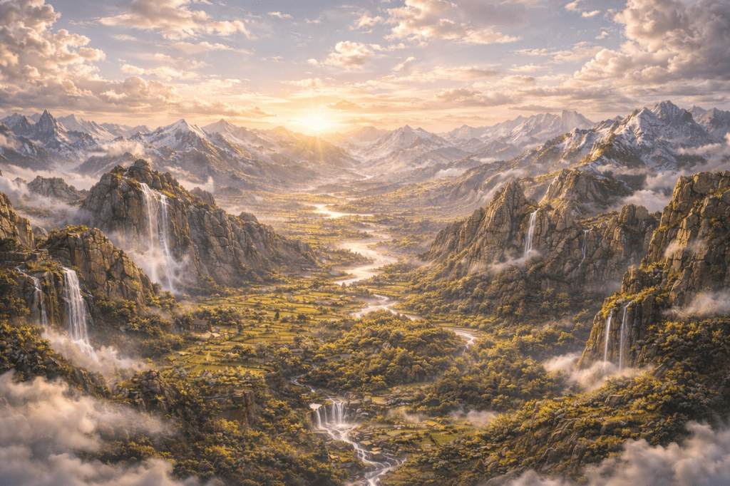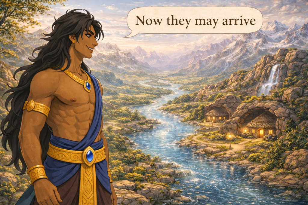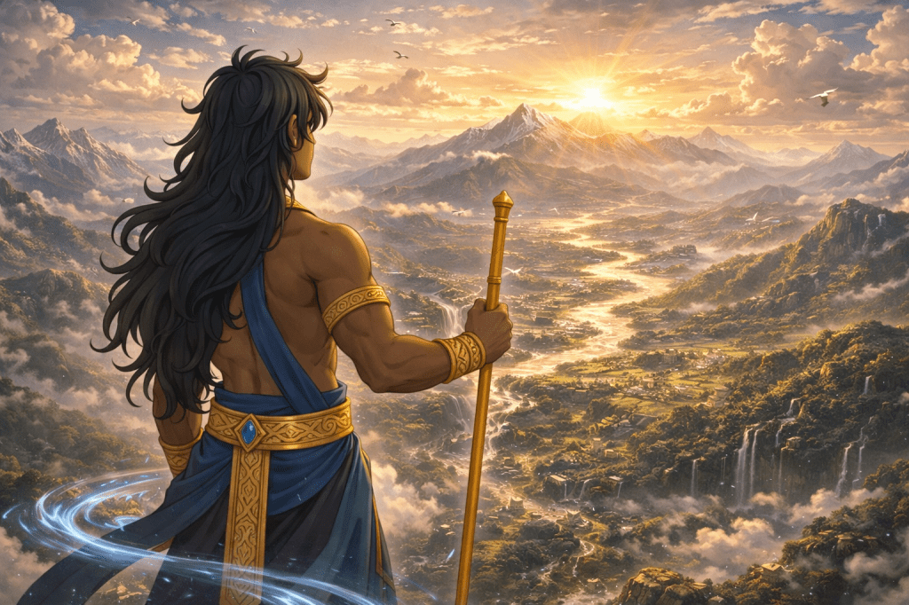 As the last stream found its place, Kanhav looked across Parshivlok once more, seeing mountains standing firm, soil breathing life, lands ready for homes, and water flowing without fear.