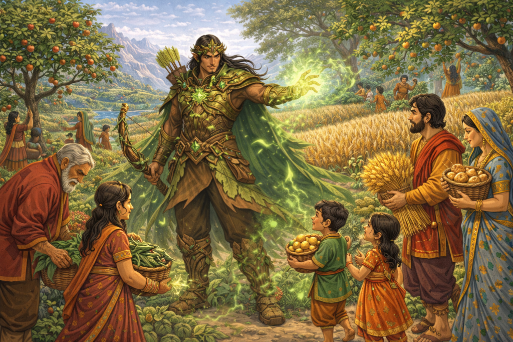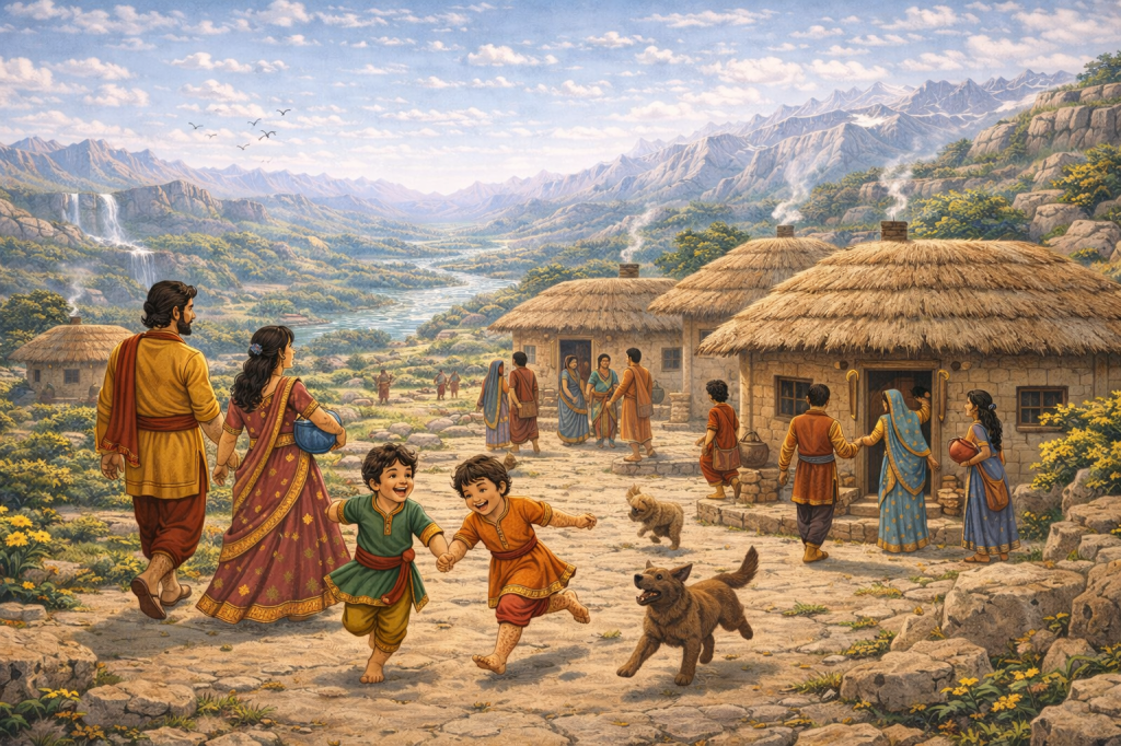As humans began choosing where to settle, Tarunik’s work revealed itself naturally, with the ground offering space for homes, paths forming easily beneath careful steps, and shelter rising without resistance, as if Parshivlok itself wished to help.