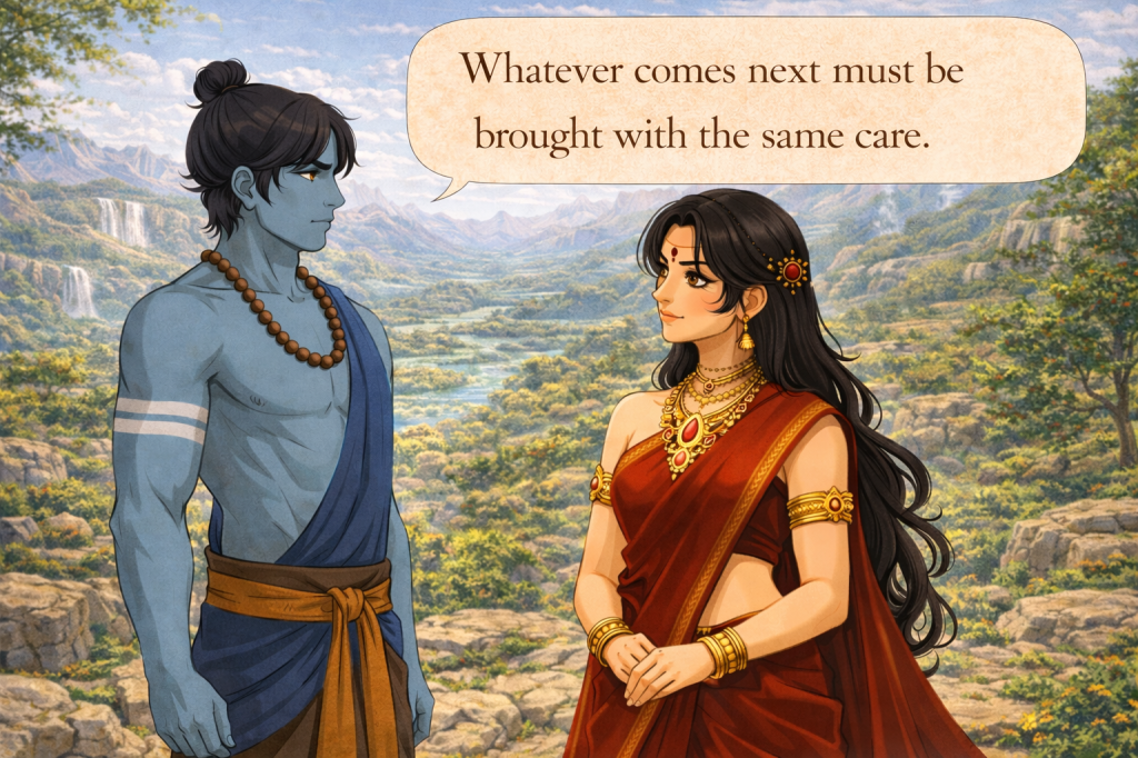 Their gaze then moved toward Shevak, whose stillness held the world together even now, unseen yet deeply felt, and they thanked him too, because something within them sensed that Parshivlok rested only because someone had chosen to hold it without ever asking for praise.