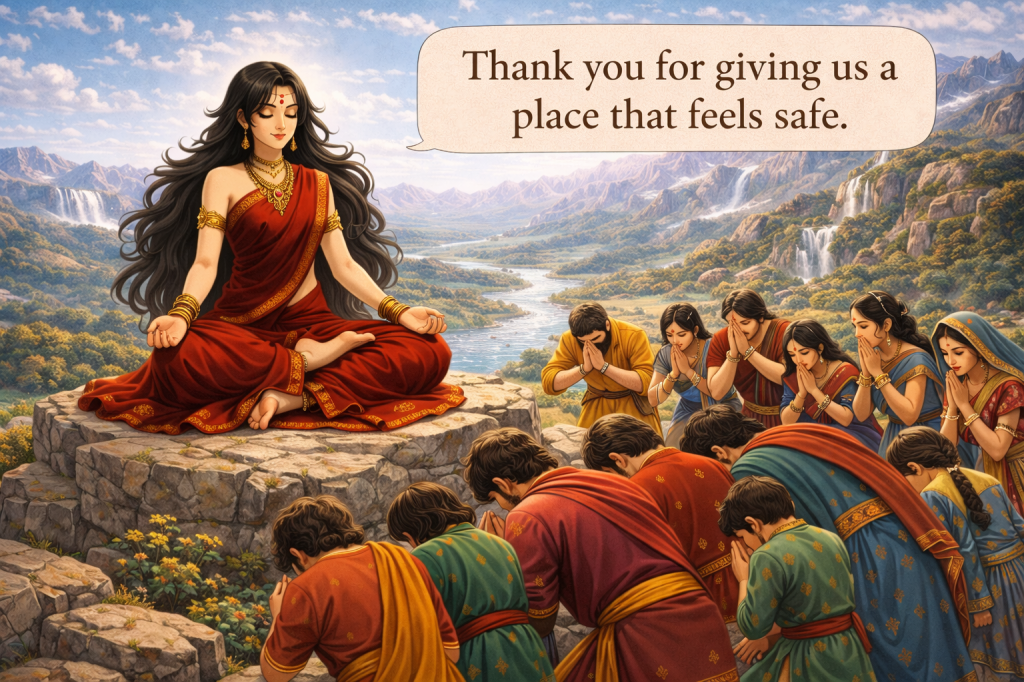 Yashasvita listened quietly, her presence calm and reassuring, as if reminding them that creation was never meant to feel distant from those who lived within it.