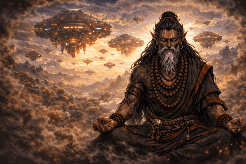 As he meditated, the world around him softened, and time itself loosened its hold, allowing his vision to move forward, far beyond Parshivlok, far beyond Earth, into a space where shadows were not shaped like humans or animals.