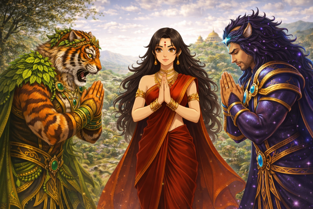 She then called for Narsant and Vyagresh, whose strength was rooted in the land and whose presence carried the calm of guardians who did not seek battle, but stood ready for it.