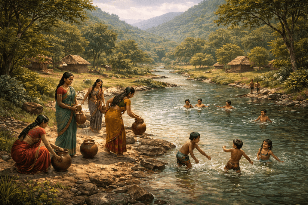 For many days after humans had settled, Jeevanrekha flowed quietly through Parshivlok, its waters clean and calm, offering life and comfort.